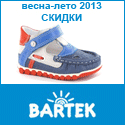 Официальный представитель польской марки детской обуви BARTEK в России сообщает о скидках на коллекцию Весна-Лето 2013. Легкие, удобные, модные, недорогие ботиночки, туфельки, сандалии, босоножки BARTEK теперь можно купить еще дешевле! Спешите, в магазинах наступает горячий сезон продаж!