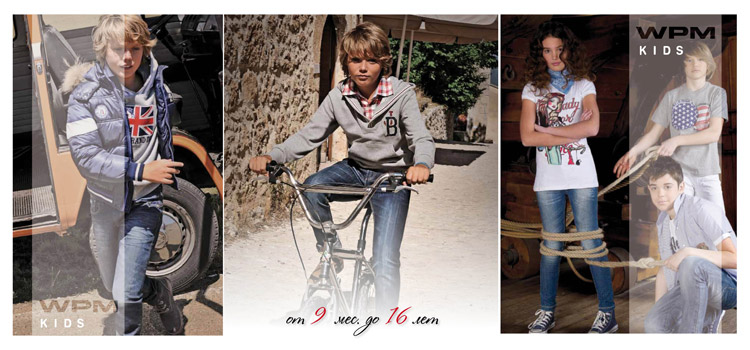 Известный итальянский бренд, который предлагает яркую и остро современную одежду для детей от 0 до 16 лет.  Основой коллекции являются куртки, джинсы, толстовки, рубашки, выполненные с налетом городского шика. Традиционное высокое качество, многогранность моделей, постоянный поиск нового и внимание к изменениям во вкусах и моде подростков. WPM - это одежда в стиле casual, пропитанная духом «street». На российском рынке бренд WPM kids представляет компания МАГИЯ ДЕТСТВА.