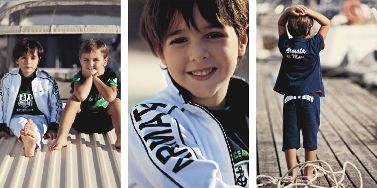 ARMATA DI MARE KIDS - это элегантная спортивная одежда для мальчиков в стиле Marine Cuture от 0 до 14 лет. Бренд ARMATA DI MARE существует на рынке уже более 50 лет. В основе создания марки лежит идея воплощения в жизнь стиля морского флота Италии. Первоначально бренд ARMATA DI MARE был представлен коллекцией для мужчин. ARMATA DI MARE предлагает альтернативу спортивному стилю в его привычном исполнении. Простая геометрия кроя и качественные ткани чистых цветов создают образ полный свободы и энергии.  В коллекции Весна-Лето 2012 можно найти все, чтобы даже на дачном участке, выглядеть, как на яхте: полосатые поло, болоньевые куртки с широкой утягивающей резинкой, рубашки и трикотажные джемпера в мелкую полоску, спортивные ветровки, укороченные кардиганы и тонкие фуфайки, выдержанные в традиционной для морского стиля красно-сине-белой гамме, шорты, джинсы классического фасона, брюки из хлопка, ремни, кепки. Компания BIMBAVERA представляет марку ARMATA DI MARE KIDS в России.