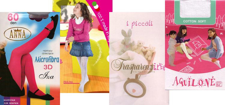 ° детская продукция компании AQUILONE: однотонные детские колготки со множеством различных рисунков, яркие леггинсы, теплые акриловые колготки с рисунком, детские носки из жаккарда или сеточки