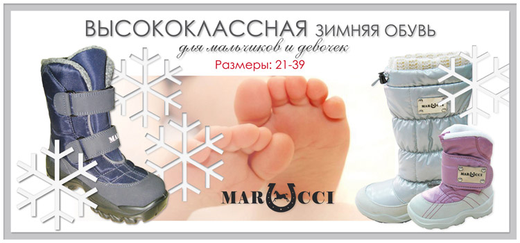 Детская обувь MARUCCI Made in Italy. Высококлассная зимняя обувь для мальчиков и девочек выпускается в размерах с 21 по 39. Обувь MARUCCI производится с использованием самых новейших разработок и современных материалов. Для изготовления верха обуви применяются искусственные текстильные материалы на основе полиэстера, полиамида и полиуретана, что обеспечивает высокую износостойкость, гибкость, лёгкость и увеличивает срок службы обуви. Материалы, используемые для зимней обуви, тестируются сертифицированными институтами, которые гарантируют, что все компоненты не содержат вредных веществ. Водонепроницаемая мембрана MARUCCI tex обеспечивает абсолютную водонепроницаемость, а внутренняя пористая поверхность позволяет ноге дышать и одновременно выводит влагу наружу, оставляя ногу сухой. Компания МАГИЯ ДЕТСТВА является эксклюзивным представителем торговой марки MARUCCI в России.