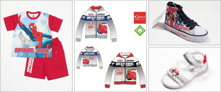 Коллекция обуви также разрабатывается по всем брендам и включает: кроссовки и спортивную обувь, босоножки, сланцы, резиновые сапоги, тапочки, пинетки, зимние ботинки-дутики. Размеры – с 16 по 34.